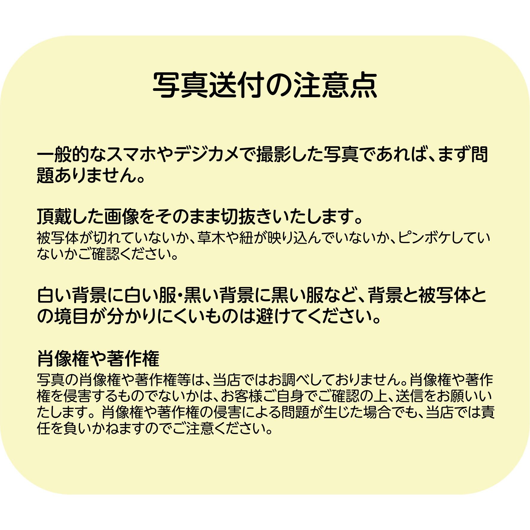 写真の肖像権や著作権等は、当店ではお調べしておりません。肖像権や著作権を侵害するものでないかは、お客様ご自身でご確認の上、送信をお願いいたします。 肖像権や著作権の侵害による問題が生じた場合でも、当店では責任を負いかねますのでご注意ください。